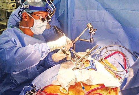 Asst Prof Chua Kim Chai performing a minimally invasive cardiac surgery.