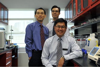 The NHCS team, that achieved the breakthrough includes (from left) Dr Winston Shim, Dr Reginald Liew and Associate Professor Philip Wong. ST PHOTO: DESMOND FOO