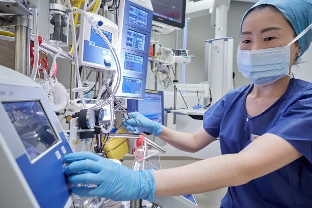 During a heart transplant surgery, patients are placed on cardiopulmonary bypass with a heart-lung machine. Perfusionists like Yee Jean operate the heart-lung machine and maintain the haemodynamic status (flow of blood) of the patient throughout the entire period of the bypass.