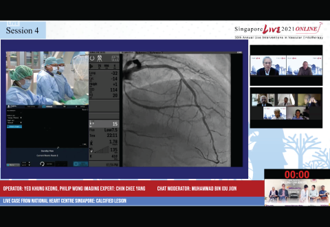 (L-R) Collaborating with an industry partner at Cath Lab to deliver one of the meeting’s preview series webinars; Prof Koh takes the stage in another preview series webinar.