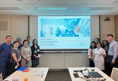 An ESS steering committee led by Chairperson, Assoc Prof Yeo Khung Keong, Deputy CEO and Senior Consultant, Department of Cardiology, as well as a core team have been established to look into each standard/chapter. Internal trainings have begun since last July to familiarise leaders with the programme. More recently, a workshop on on-site tracer was held with the JCI/ESS consultant.