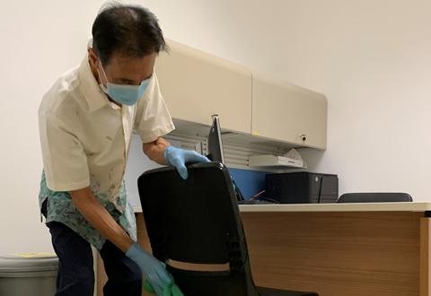 “The type of cleaning agents are in accordance to infection control practices, such as disinfectants for high-touch areas during this period of COVID-19,” shared Amy Toh, ISS Project Manager overseeing the housekeeping staff.